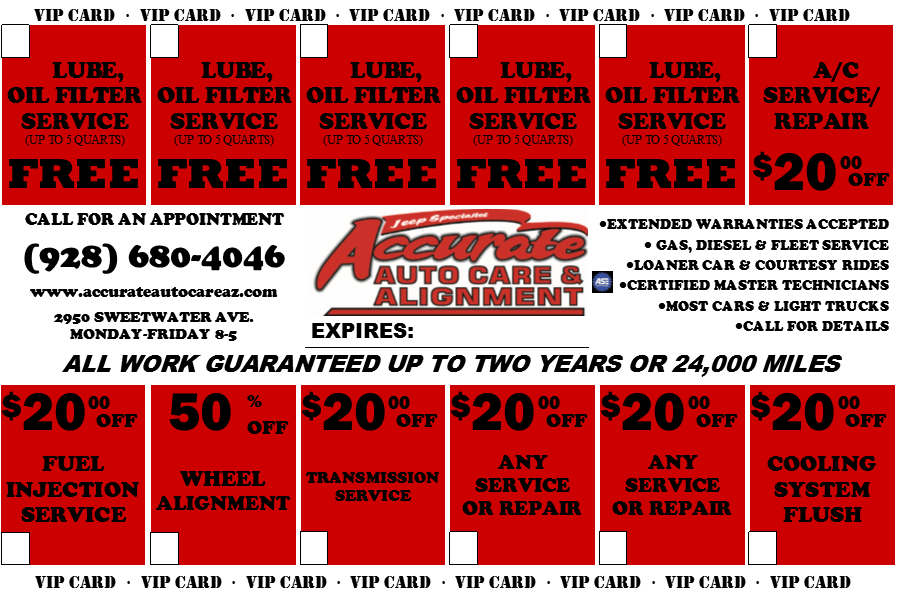 Joining Our VIP Club provides you with discounts on a variety of services. You will receive 5 free standard oil changes and discounts on services and repairs.